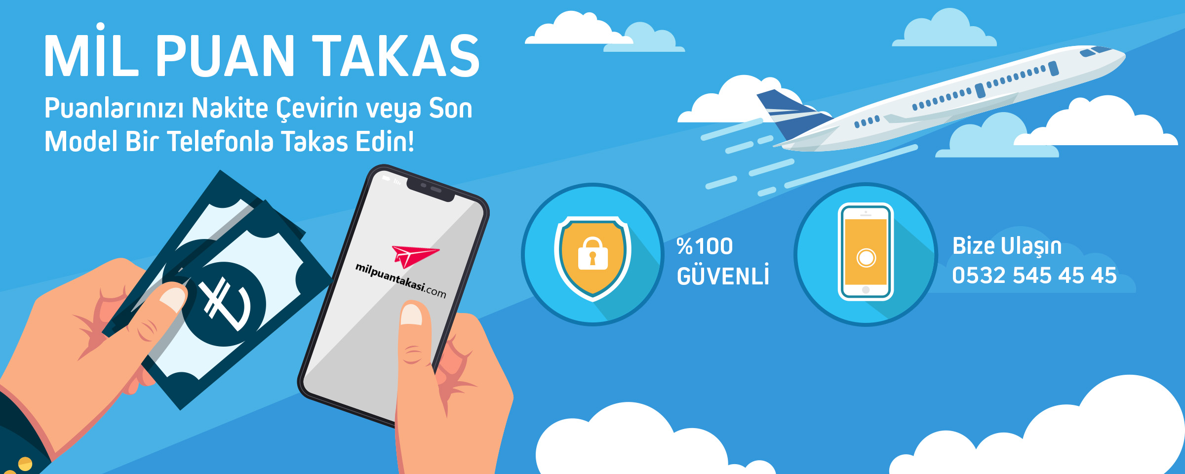 Birikmiş millerinizi "Mil Puan Takası" farkıyla dilersenz nakit paraya dilerseniz de iPhone, Samsung, Huawei vb. marka son model akıllı telefonlar ile takas yapabilirsiniz.